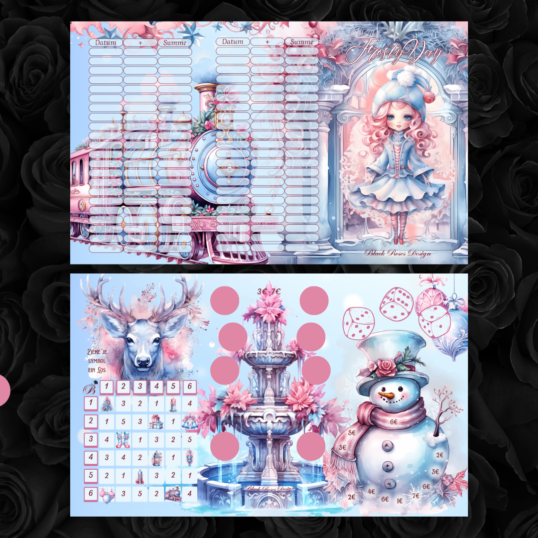 Winterliche 3er Klappkarte mit abwechslungsreichen Spiel-und Sparmöglichkeiten. Passt in eine A6 Zippertasche.