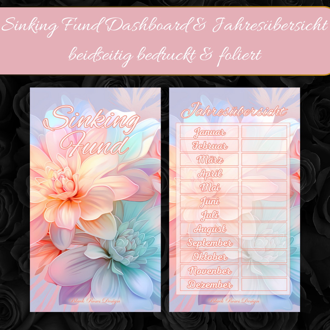 Sinking Fund Tracker und Dashboards im passenden Design, sowie A6 Hüllen findest du ebenfalls in meinem Shop.