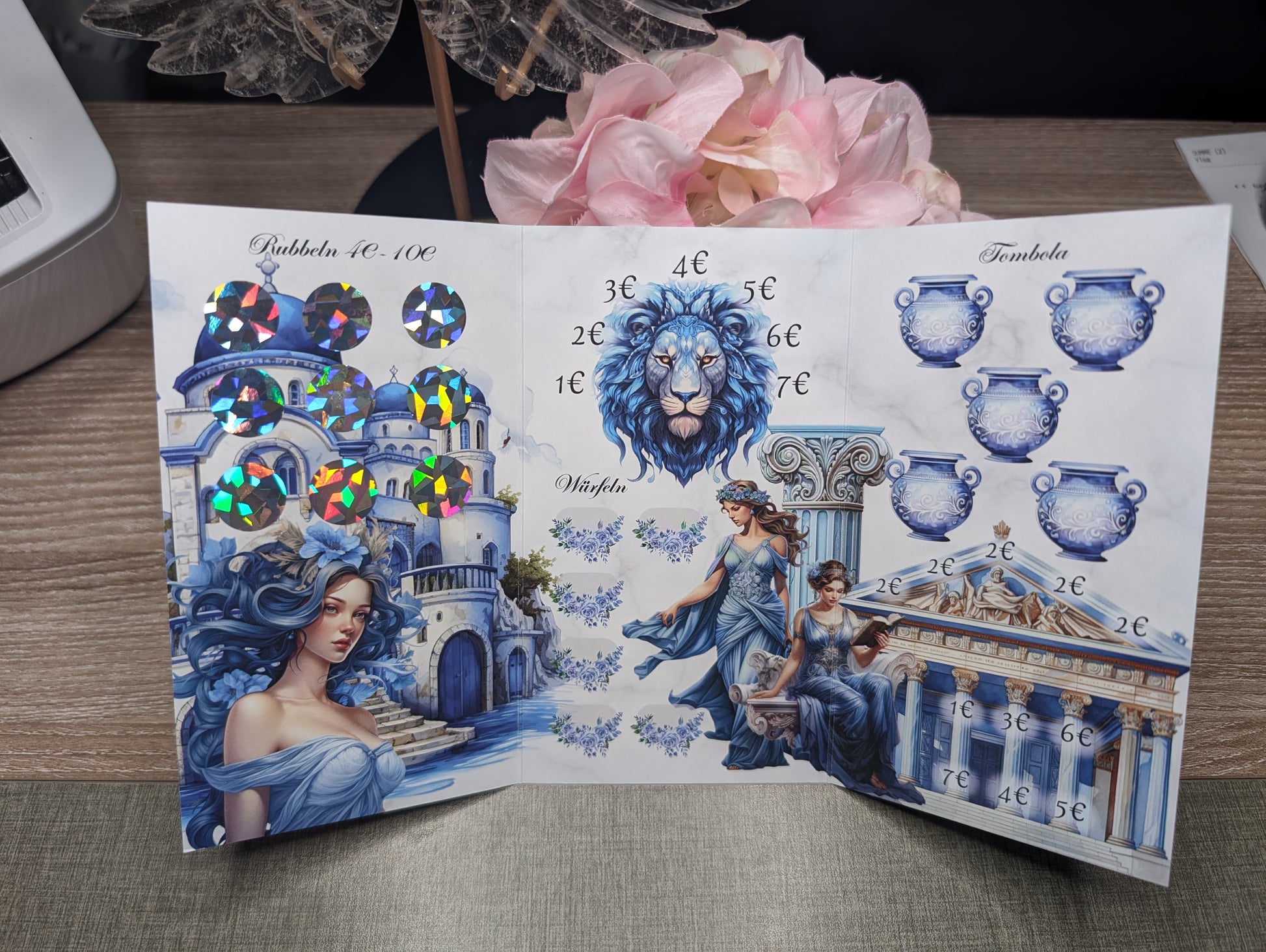 Du möchtest spielerisch etwas Geld sparen? Dann ist dieses 3er Klappkarte mit abwechslungsreichen Spiel-und Sparmöglichkeiten genau das Richtige für dich.